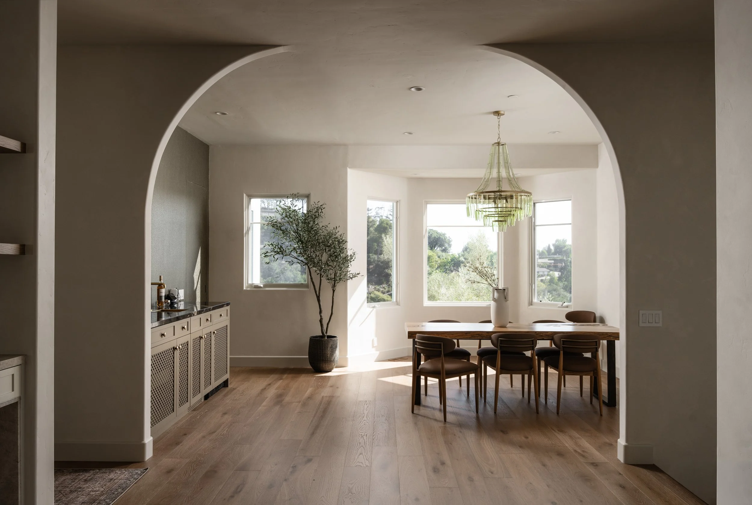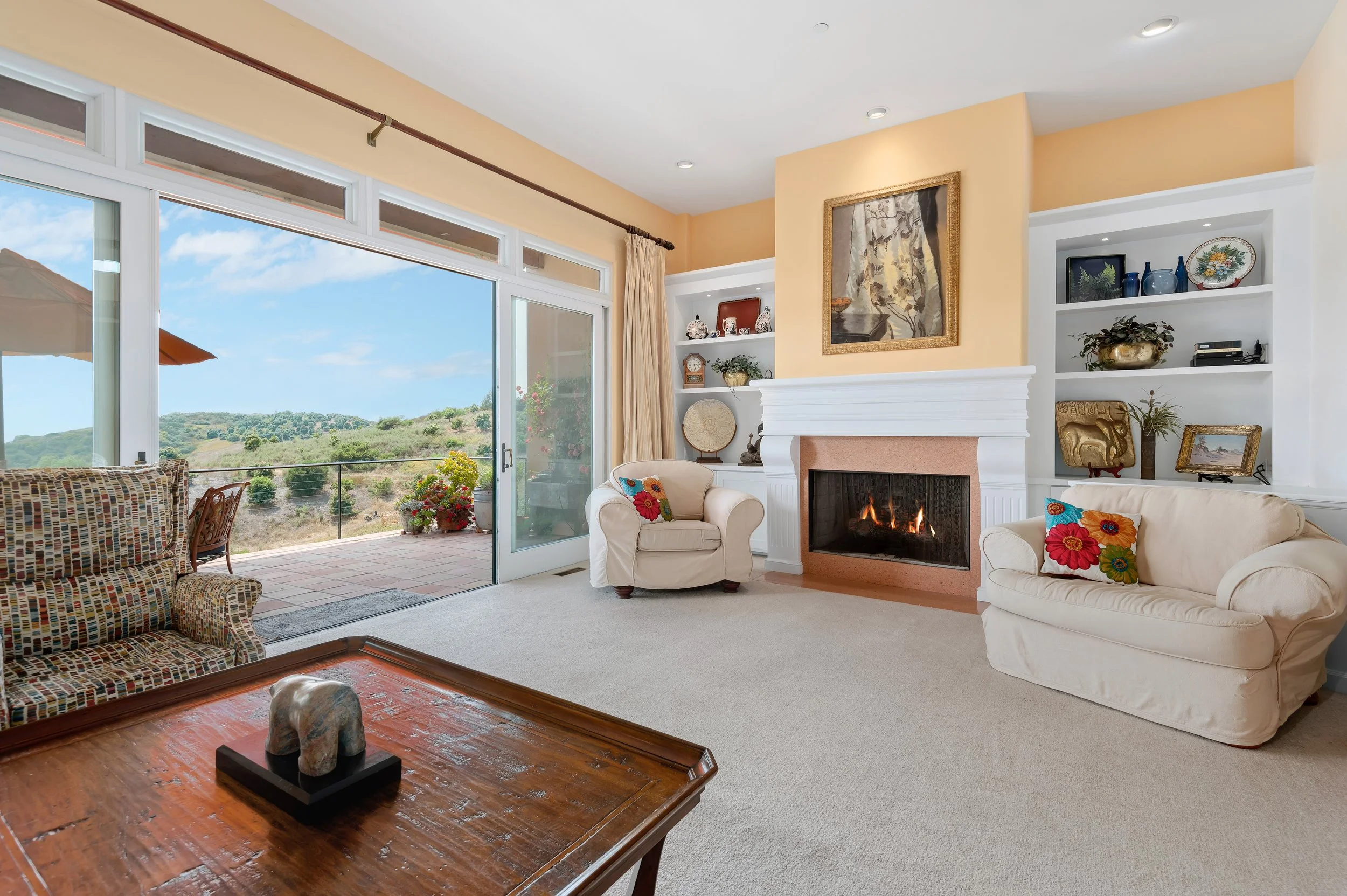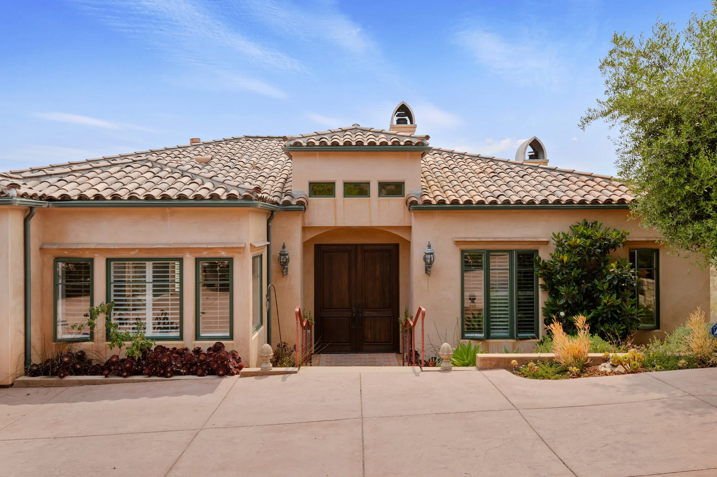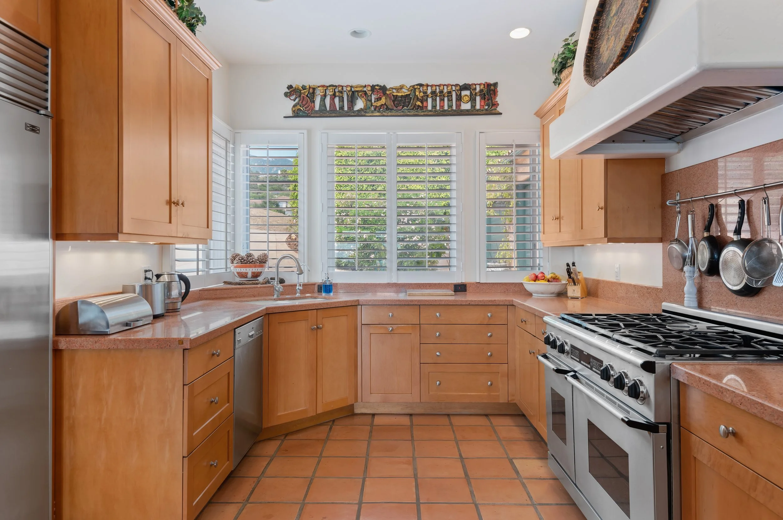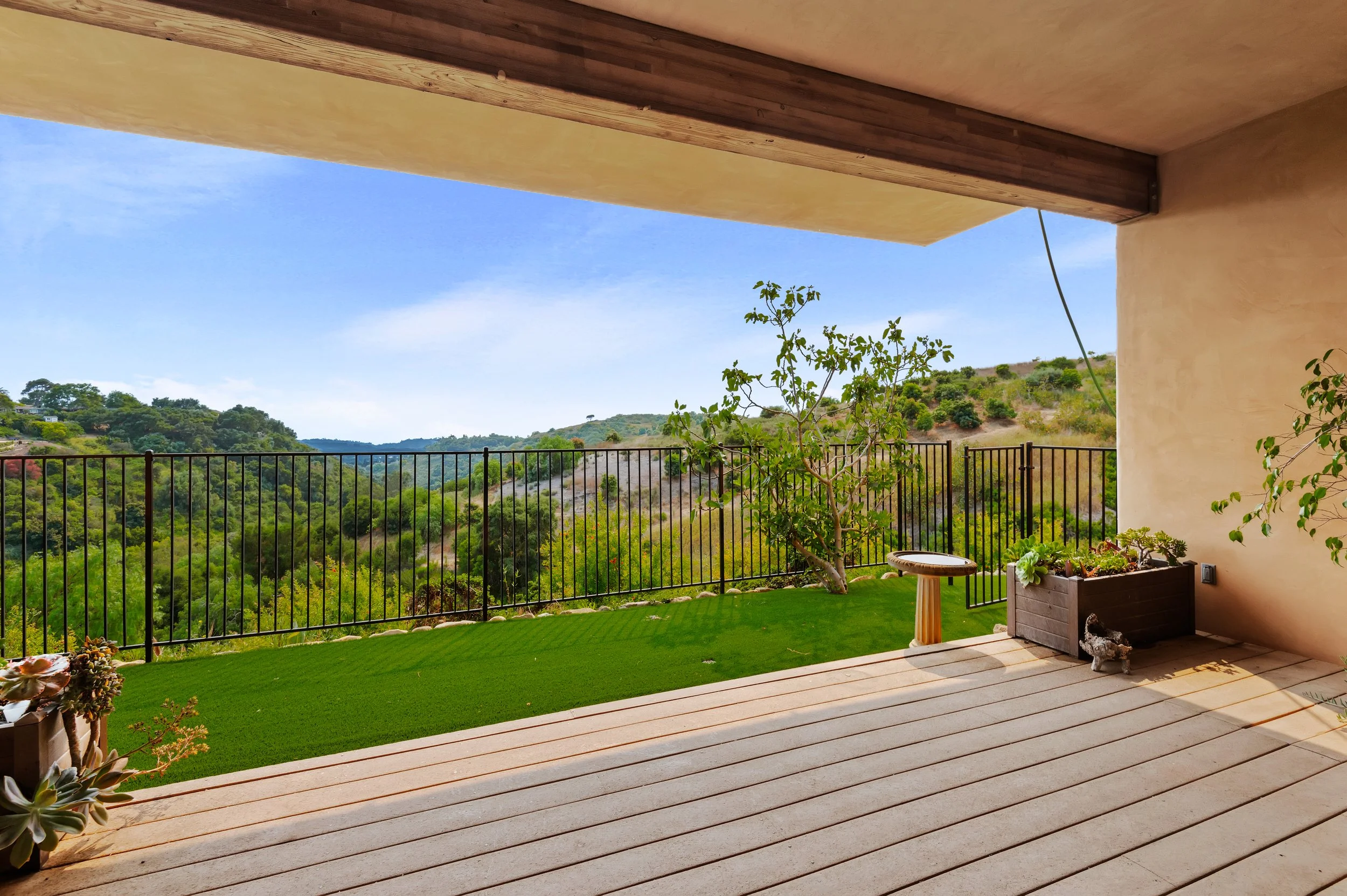Perched atop a private knoll in Mission Canyon, this Spanish-style home was thoughtfully redesigned by our team to elevate its natural light, flow, and sweeping canyon views. Our updates refined the main living spaces, refreshed the chef’s kitchen, and enhanced the seamless indoor–outdoor connection that defines California living. Three en-suite bedrooms anchor the main level, with a versatile lower level offering space for guests, work, or wellness. Exterior improvements celebrate the property’s 4.6 acres, from view-filled terraces to beautifully restored pathways and garden moments. The result is a warm, sophisticated retreat that feels both grounded in nature and perfect for modern life.