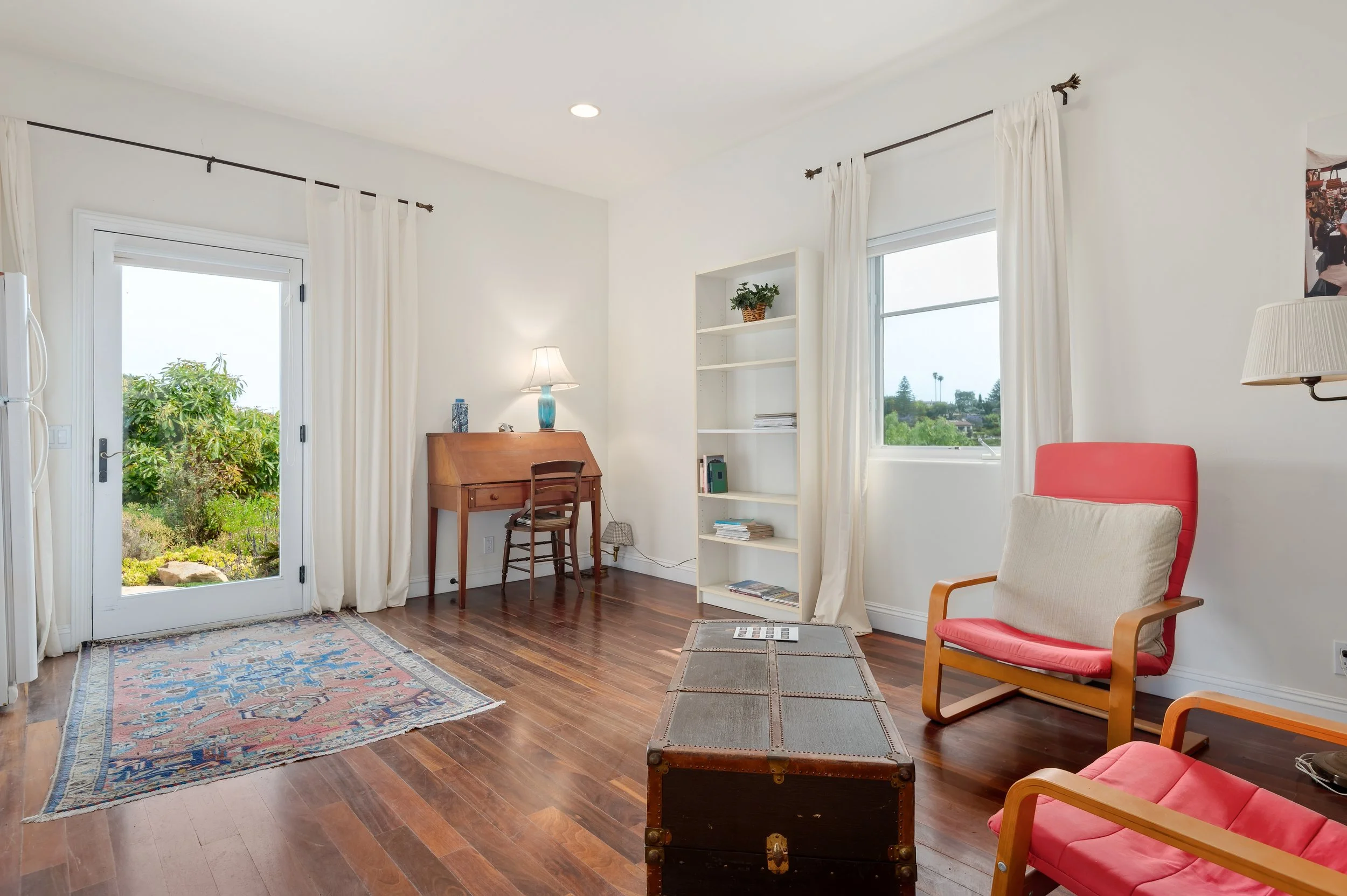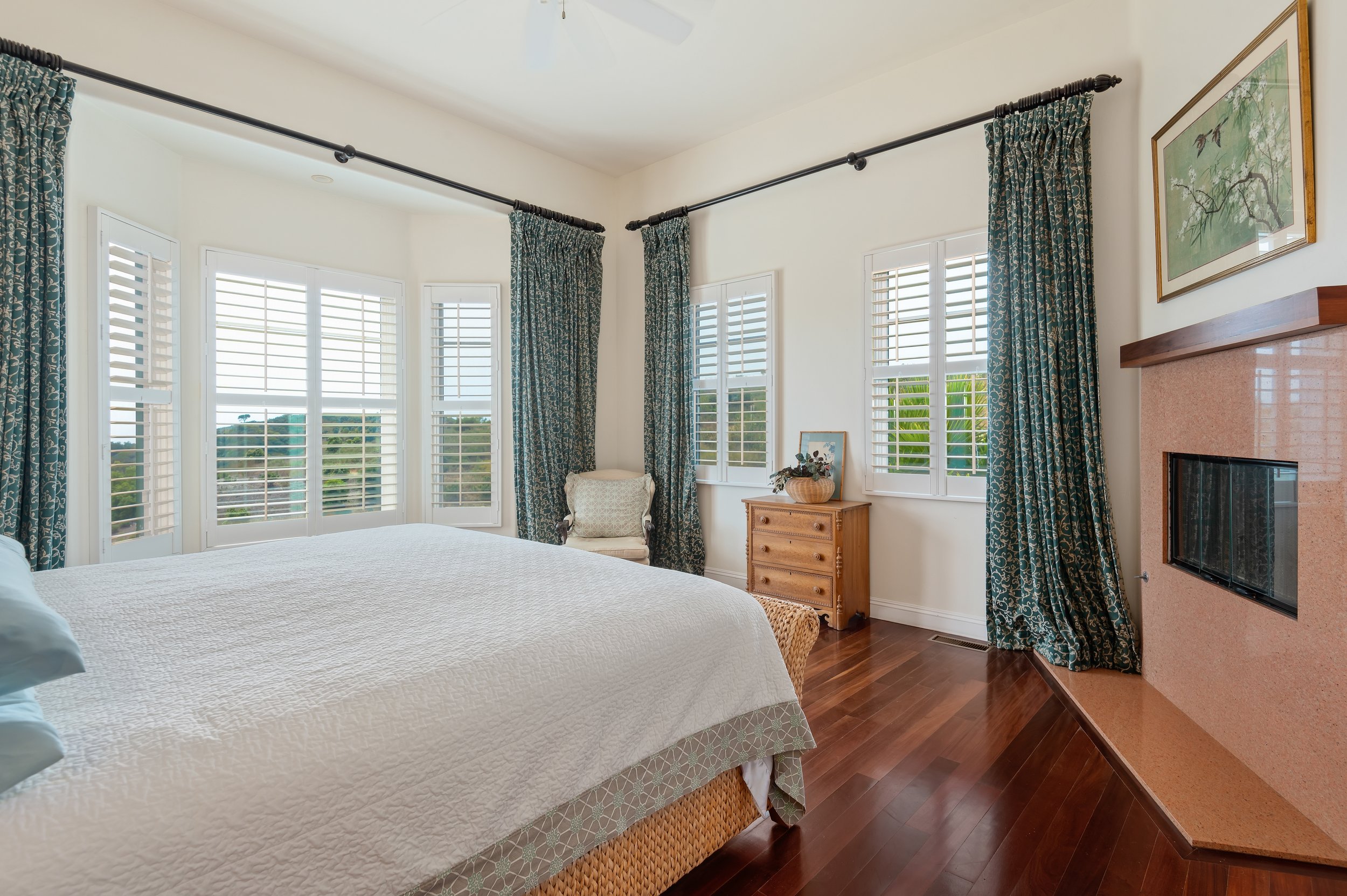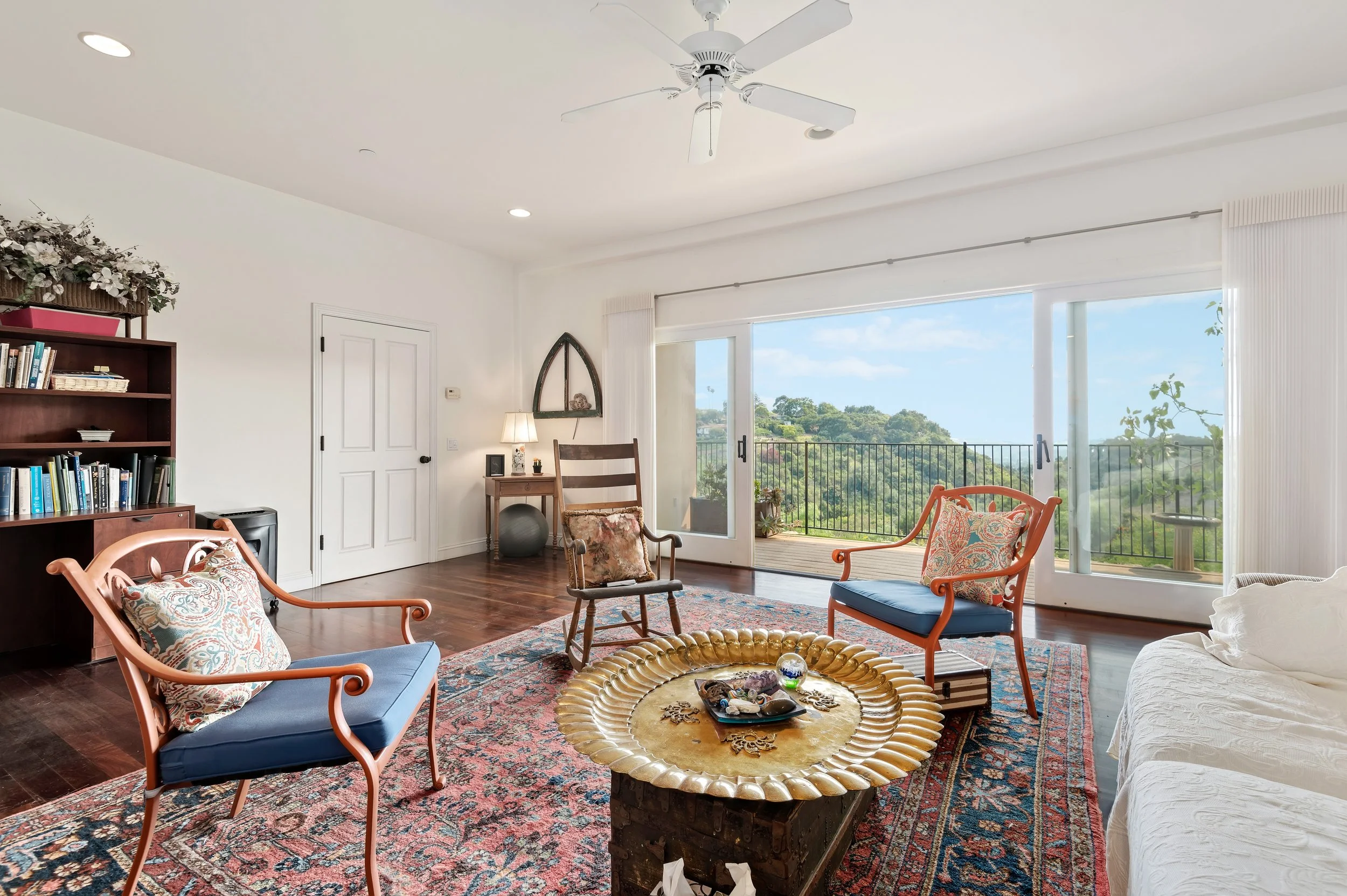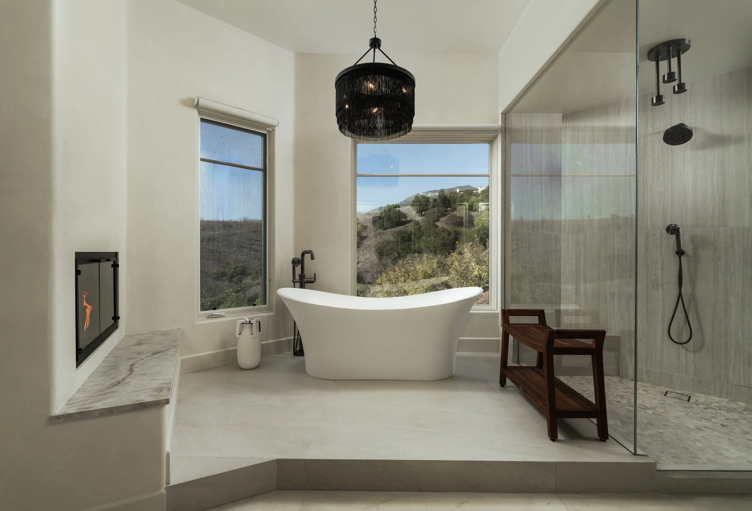 Perched atop a private knoll in Mission Canyon, this Spanish-style home was thoughtfully redesigned by our team to elevate its natural light, flow, and sweeping canyon views. Our updates refined the main living spaces, refreshed the chef’s kitchen, and enhanced the seamless indoor–outdoor connection that defines California living. Three en-suite bedrooms anchor the main level, with a versatile lower level offering space for guests, work, or wellness. Exterior improvements celebrate the property’s 4.6 acres, from view-filled terraces to beautifully restored pathways and garden moments. The result is a warm, sophisticated retreat that feels both grounded in nature and perfect for modern life.